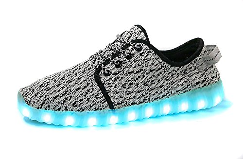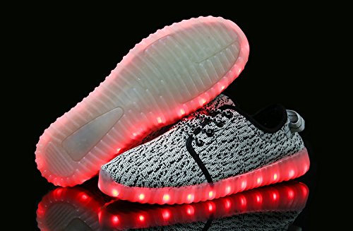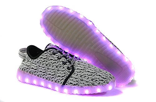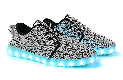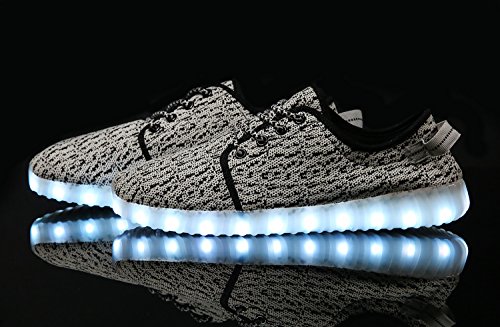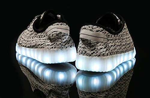 Quanfort LED shoes has 7 different colors and 3 different flashing ways. Press the switcher to change the colors.LIGHT MODES:1 red(steady) 2 green(st') 3 blue(st') 4 yellow(st') 5 skyblue(st') 6 purple(st') 7 white(st') 8-11 Light flash 12 light off