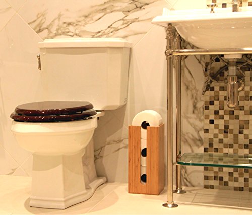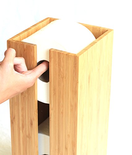 Bamboo Toilet Paper Holder perfect for toilet paper storage or general bathroom storage, a freestanding toilet paper holder handmade from biodegradable bamboo