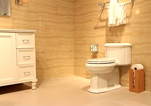 Storage - Holds up to 3 rolls of toilet paper, both regular and multi-ply (both roll types displayed in product pictures)