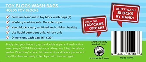 -. Feature : HOLDS TOY BLOCKS: Blockwash by Kuitsok hold your LEGO blocks, Duplo blocks and Mega Blocks! You'll be able to get them all cleaner for little hands to enjoy. / PREMIUM Nano Mesh: Our bags are made of premium nano mesh that scrubs the blocks as they tumble and durable enough to hold up to your bulk blocks and your washing machine. / PERFECT SOLUTION: Cleaning Used or Dirty LEGO, Duplo and Minifigures made easy. Child Care centers best for germ disinfection ball pits / HEALTHY & CLEAN DAYCARE: Children, whether they want to or not, often share germs on their toys. That's especially true with all the little nooks and crannies with building blocks. Keep the daycare blocks clean and your children healthier. School Approved / MAKES CLEANING EASY: Don't clean bricks by hand; simply drop them into our full dimension bag, drop it in the washing machine (liquid soap only) or in a bucket of warm, soapy water and out come clean, sanitized blocks!
