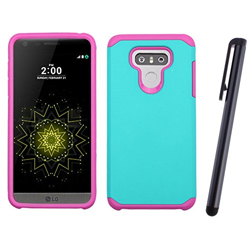 -. Title : LG G6 H870 Case, Fincibo (TM) Hybrid Astronoot Dual Layer Hard Silicone Snap On Protector Cover, Teal Green/ Hot Pink + Stylus Pen