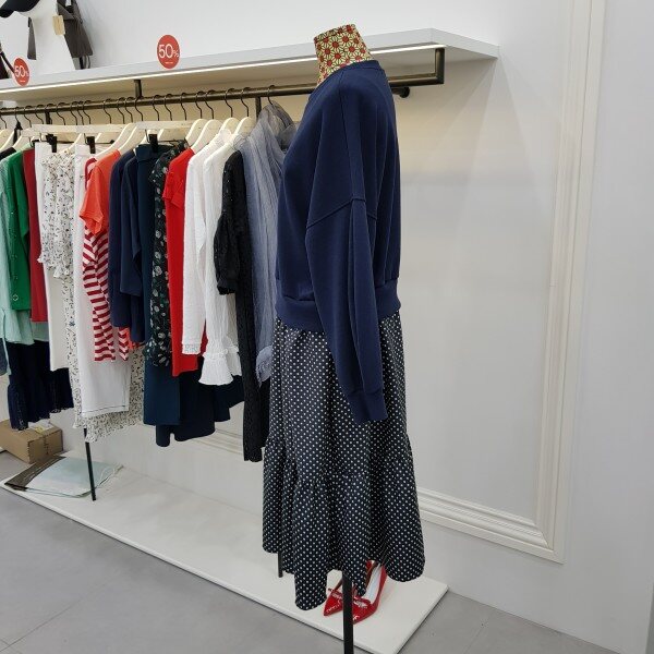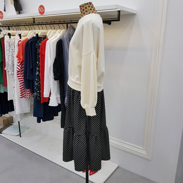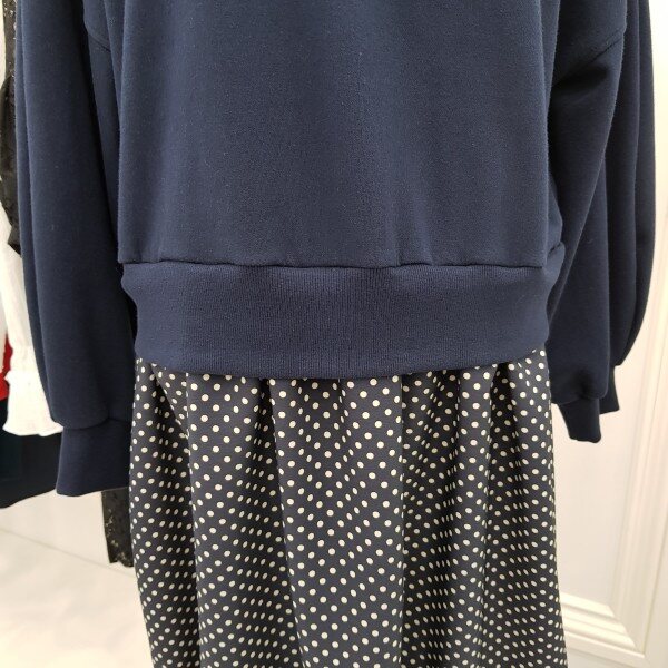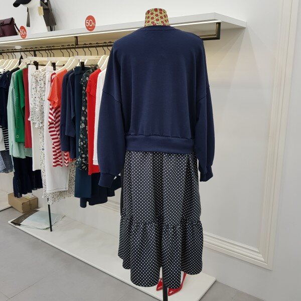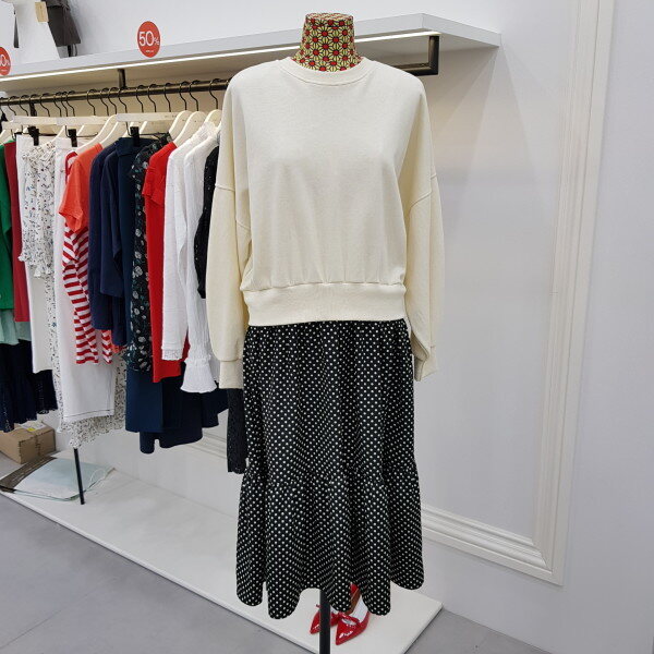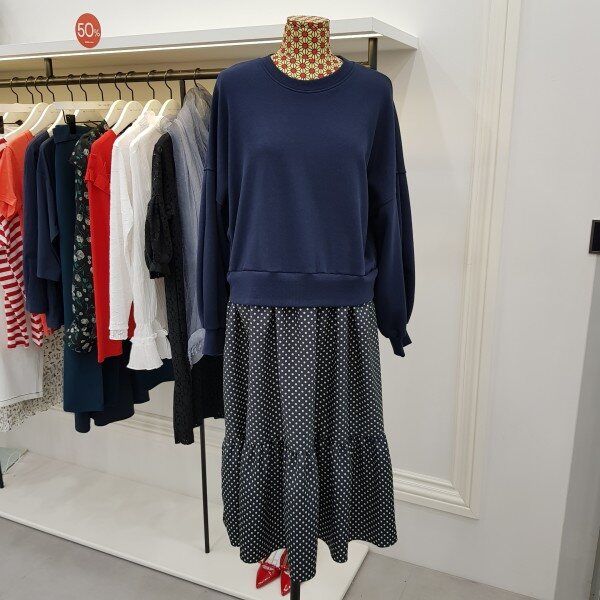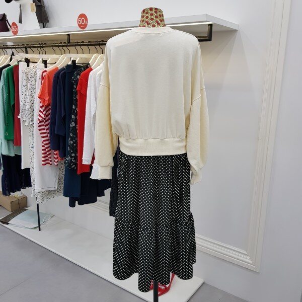 맨투맨티와 스커트를 연결시켜논 스타일리시한 윈피스 입니다
