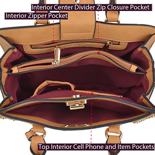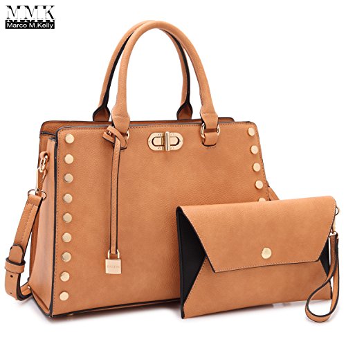 -. Feature : ☆ ☆ MMK COLLECTION BRAND NAME FEEL:USA Brand (Imported) ~ This Cute New Fashionable Metal Style Women Satchel Set using high-quality Faux Leather, with all stitches in neat and orderly rows. We have always been strict with both the choosing of materials and processing of products, in other words, we are better at material selection and superior in product making, taking every detail into consideration for the dear customers to meet as much as possible their own styles. / ☆ EXCELLENT SIZE FOR ANY DAILY BUSINESS OCCASIONS: Approx Size: 14"W x 10.5"H x 6.5"D + Matching Accessory Pouch Inside: (size: 9.5"x7.2"), This Fashionable Satchel is extremely roomy to fit most of your everyday essentials. Goes well with any outfit in any occasions like work, business, dating, Daily, travel, school and you will feel comfortable to wear it. This Satchel perfectly holds your 14 inch Laptop, iPad, iPhone, A4 File. And other business or daily things. / ☆ MULTI-POCKETS TO COMFORT YOUR LIFE: Free Matching Color Wristlet that fits in most smartphones, including iphone 7 plus(Size: 9.25"x6"x1") + Top Magnetic Snap Closure + Extra Front compartment with a Twist lock closure + Flat Bottom Design with Gold Tone Studs + Fully lined interior + Gold-tone hardware, accents, hinges and zipper pulls + Additional Dangling Padlock with Logo deco in front + Interior Back Wall Zipper Pocket + Interior Front Wall Open Top Cell Phone and Item Pockets / ☆ LIMETED EDTION - Macro M.Kelly Handbag Collaborative Design (This's not associated with brand) / ☆ SPECIOUS RETRO SIMPLE METAL DESIGN AND SERVICE: Front Side Metal Studded, Front Top Gold-Tone Twist Lock Closure, Additional Dangling Padlock and In Trendy Most Popular Color, this Pretty Satchel Handbag ensures you this style will never out of fashion! Purse by Macro M. Kelly collection.Our goal is to ensure that you're 100% satisfied with your purchase right out of the box. If you're not satisfied for whatever reason, we will gladly accept your return provided that you request authorization