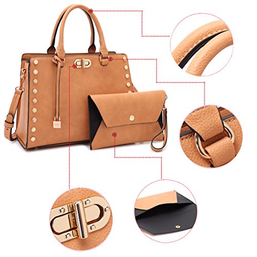 -. Title : MMK Collection Fashion Women Vegan leather Satchel Handbags with Matching Coin Purse~Studded Deco and Dangling Padlock~Pretty and Cute Gift for Ladies~clutches &handbag Set(7579)
