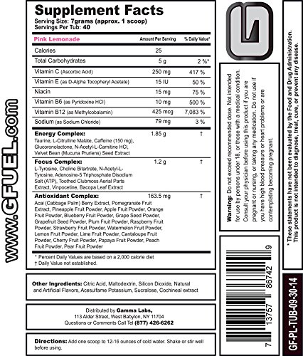 Gamma Enterprises G Fuel Nutrition Supplement, Pink Lemonade 9.8oz (280g)
