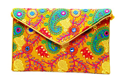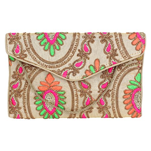 Fabric ethnic Clutches with splash of multicolour work. Ethnic clutches are designed for any evening party or casual occasions. From marriage ceremonies to all kind of wedding parties, do checkout with ethnic clutches, available in various colors. Ethnic clutches are a perfect gift ideas for women, Ladies purse as gift for girls in wedding or even on Birthdays, a gifts for wife, sister, mother, daughter or gifts for girlfriend.Feature