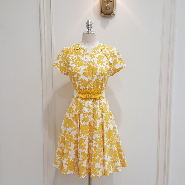 어깨요크 프릴과 함께 허리벨트 프릴로 여성스러움을 더한 프린트 핏앤블레어 스커트