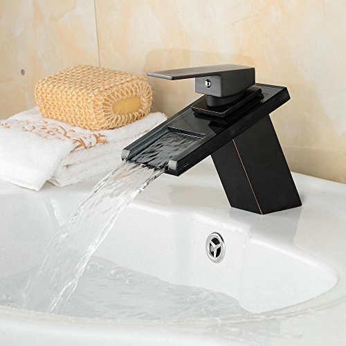 Hiendure Contemporary Waterfall Bathroom Sink Faucet with Glass Spout