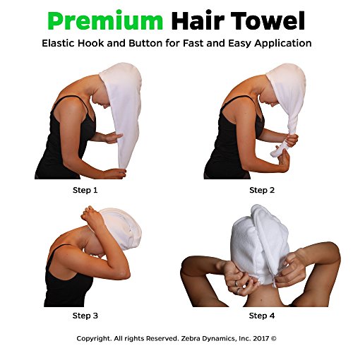 Hair Towel/Turban - Super Soft towel for drying and wrapping wet hair. Made from the highest quality Coral fleece (microfiber) material with One-Size-Fits all design and a premium white color finish.
