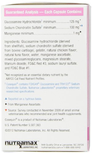 -. Binding : Misc. -. Brand : Nutramax -. EAN : 0813471010979 -. Feature : No 1 Veterinarian Recommended dietary supplement for maintaining joint health / These ingredients have been specially formulated to work together to maintain joint health in cats / Cosequin is also specific to the needs of cats -. Label : Nutramax -. Manufacturer : Nutramax -. Model : CAT80-2PK -. MPN : 015NM-CAT80-2PK -. NumberOfItems : 1 -. PackageQuantity : 1 -. PartNumber : 015NM-CAT80-2PK -. ProductGroup : Pet Products -. ProductTypeName : PET_SUPPLIES -. Publisher : Nutramax -. Studio : Nutramax -. Title : Cosequin Tablet for Capsules, 80 Count, 2-Pack -. UPC : 813471010979