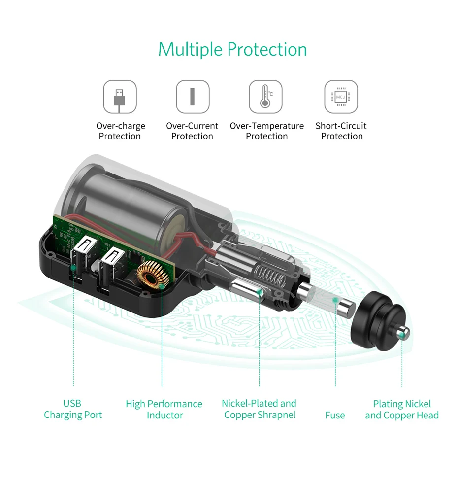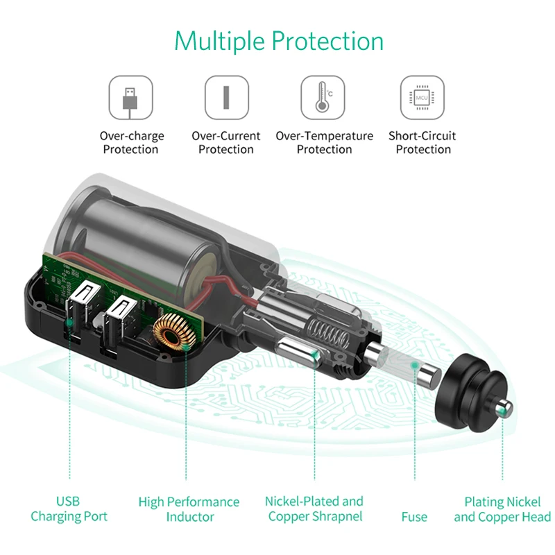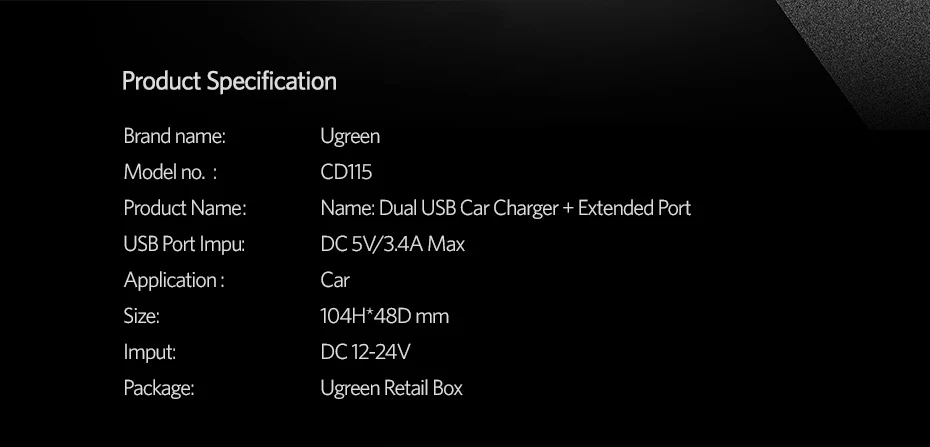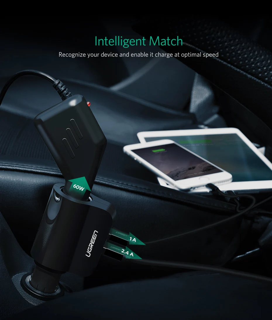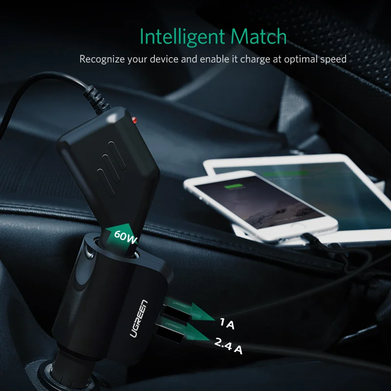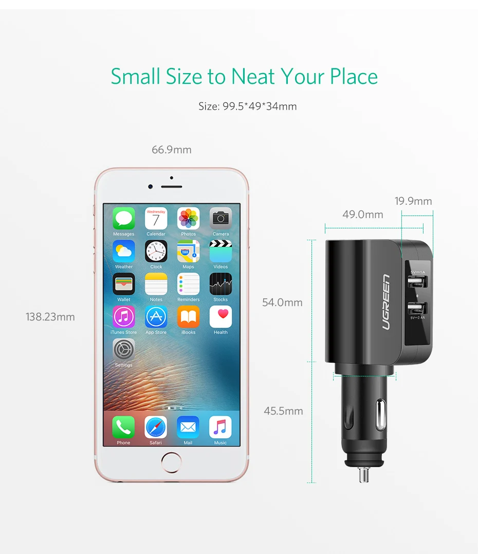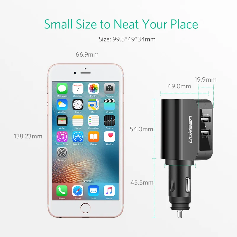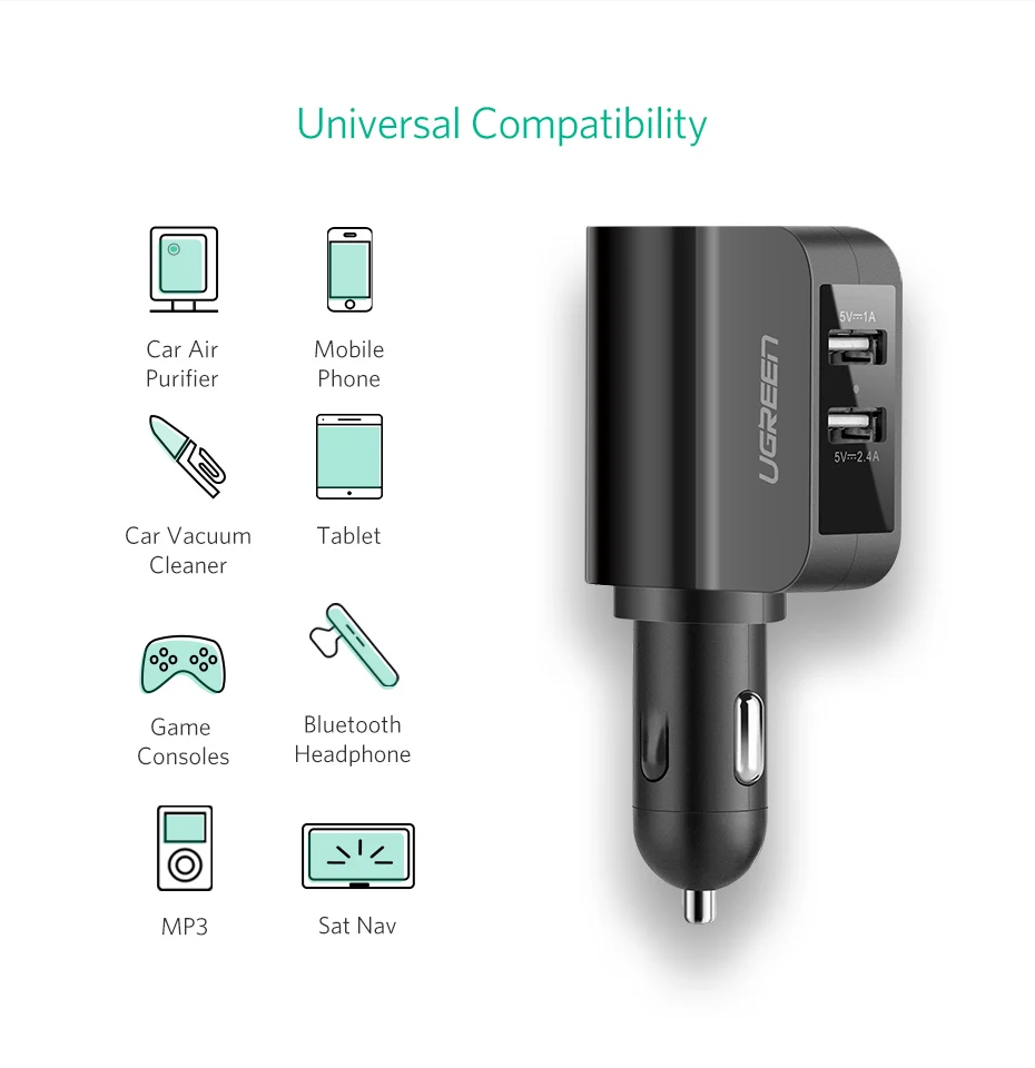 Feature:2 usb car charger + extended port