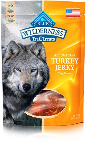 -. Binding : Misc. -. Brand : Blue Buffalo -. Feature : Made in the USA / All Natural / For dogs of all sizes / Perfect for dogs on grain-free or raw diets / Contains no chicken or poultry by-products -. Label : Blue Buffalo -. Manufacturer : Blue Buffalo -. PackageQuantity : 1 -. ProductGroup : Pet Products -. ProductTypeName : PET_SUPPLIES -. Publisher : Blue Buffalo -. Studio : Blue Buffalo -. Title : BLUE Wilderness Trail Treats Grain-Free Jerky Dog Treats