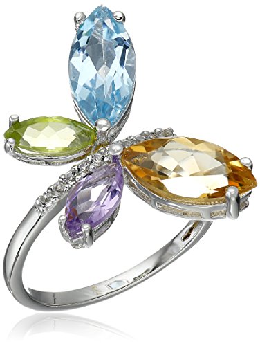 Rhodium Plated Gemstone Butterfly Ring, Size 7
