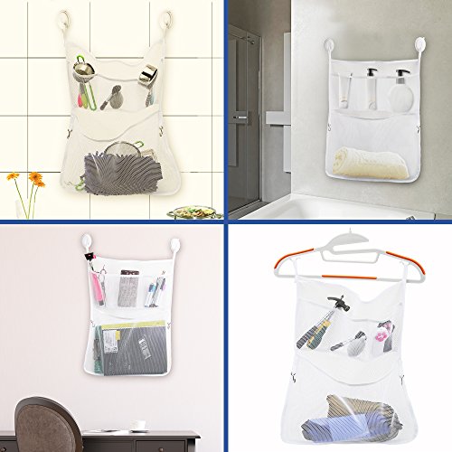 Multi-function with 3 pockets to hold shampoos,soaps,toys;2 extra metal hooks for hanging the kids washcloths,Bath Lily,etc.