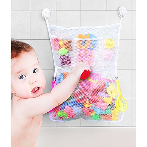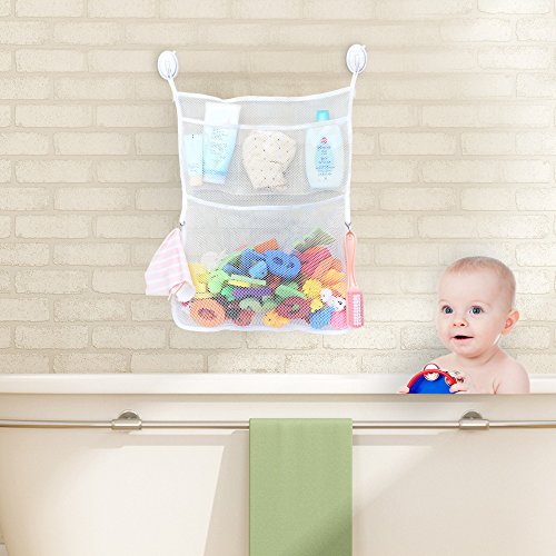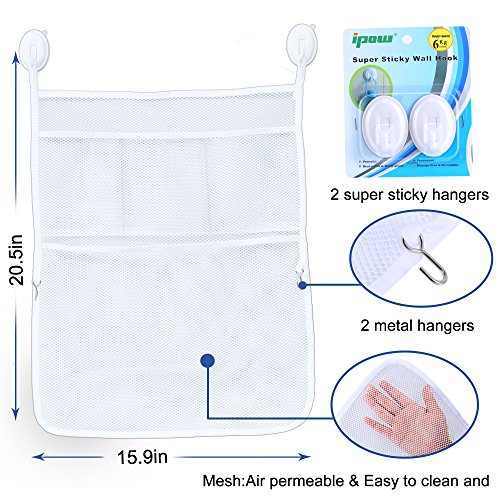 IPOW Baby Bath Toy Organizer Large Quick Dry Mesh Net,Multi-purpose Features Bath toy organizer large quick dry mesh net.3 pockets and 2 metal hooks added.