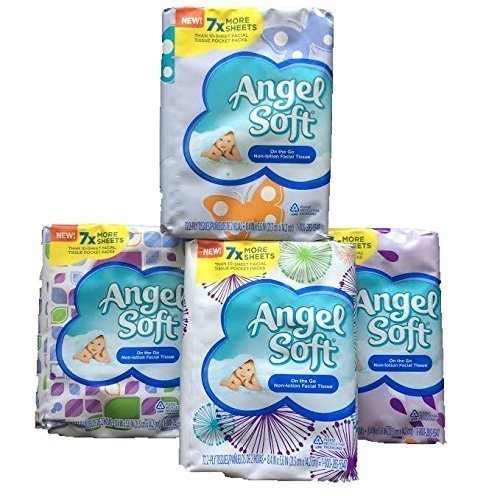 Angel Soft On the Go Non-Lotion Facial Tissue, 7X More Sheets- Assorted Pastel Colors-Total 4 Packs-288 2-ply Individual Tissues