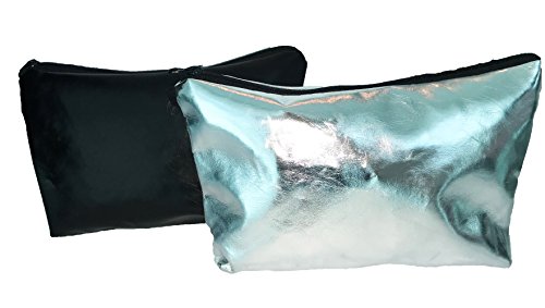 Silver Shiny Cosmetic Zipper Bag and Black Shiny Cosmetic Zipper Bag (2 bags)