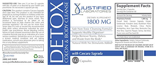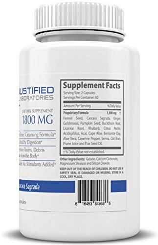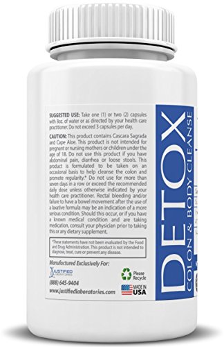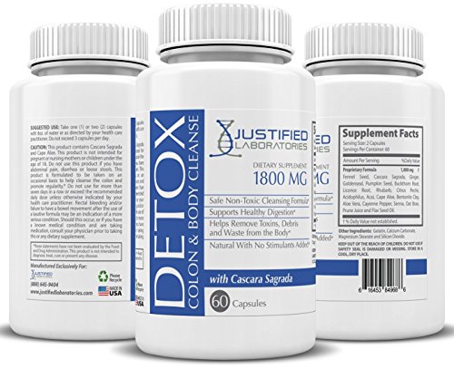 -. Binding : Health and Beauty -. Brand : Justified Laboratories -. Feature : TOTAL BODY CLEANSE: Our proP.R.Ietary blend of detox colon and body cleanse is rich in antioxidants and loaded with a variety of all natural ingredients. This cleanse will not only remove debris from the lower intestines but also eliminate toxins throughout your entire body. After your body has eliminated these damaging toxins you will feel an increase in daily energy levels and a boost in your metabolism / DIGESTIVE SUPPORT: When food is not digested properly it will build up in intestines and lower colon. This cleanse will help improve daily digestion and eliminate constipation. By encourage daily bowl movements you will feel healthy and fresh / MADE IN THE UNITED STATES OF AMERICA: All of our products are formulated in a state of the art GMP certified and FDA registered certified facility. All product are Non-GMO & Gluten-FREE with No Lactose Soy Wheat Yeast or Fish. / MAINTAIN A HEALTHY LIFESTYLE: To maximize the benefits of this supplement we sest to incorporate daily exercise and drinking up to eight glasses of water per day. -. Label : Justified Laboratories -. Manufacturer : Justified Laboratories -. PackageQuantity : 1 -. ProductGroup : Health and Beauty -. ProductTypeName : HEALTH_PERSONAL_CARE -. Publisher : Justified Laboratories -. Studio : Justified Laboratories -. Title : Colon Detox Total Body Cleanse - Flush Excess Waste and Toxins - Promotes Healthy Digestion and Weight Loss 60 Capsules