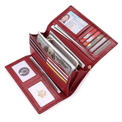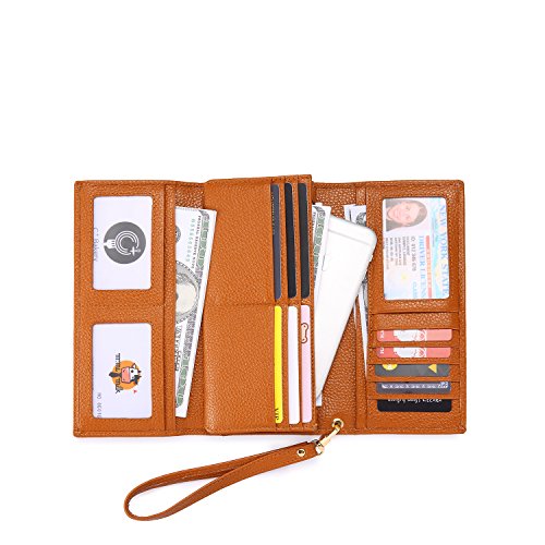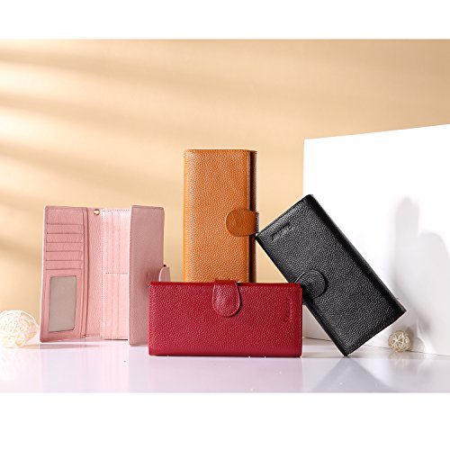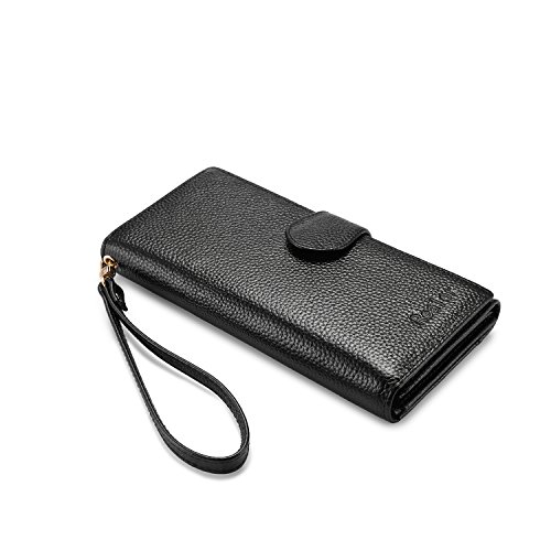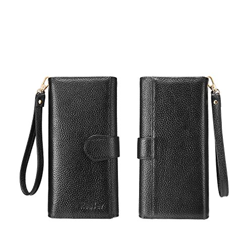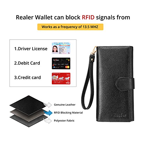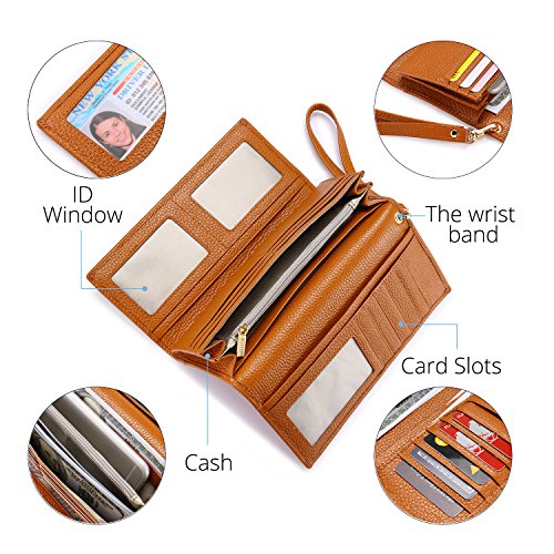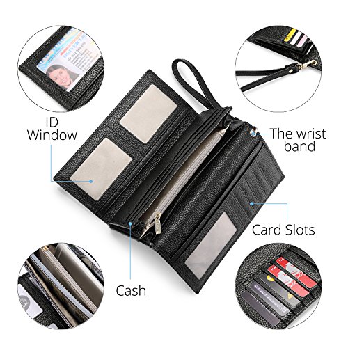 -. Title : Wallets for Women Rfid Blocking Genuine Leather Long Ladies Wallet Purse with Wristlet Strap Bifold