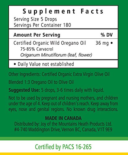 Oregano Oil - 1 Oz / 30ml, 100% Certified Organic