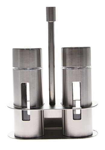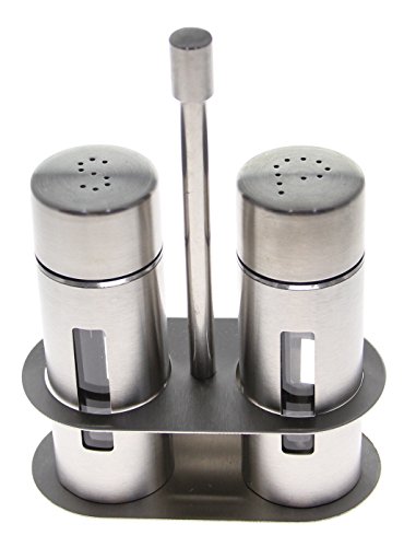 - Feature : Measures 5.9" X 4.3" X 2.0" / Made from high quality stainless steel with a small window / This salt and pepper shaker set with holder can be used at homes, cafés, restaurants, hotels, and at special events / Can be conveniently carried around and easily washed / Makes a good housewarming gift