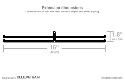 -. Binding : Misc. -. Brand : Believe&Train -. Color : Black -. EAN : 0099461320307 -. Feature : Add-on to your existing Believe&Train medal hanger / Does not include medal hanger / Includes complete wall mounting kit / Comfortably holds 28-36 medals** / Made of light weight high grade aluminum -. IsAutographed : 0 -. IsMemorabilia : 0 -. Label : Alveni -. LegalDisclaimer : *Does not include tools nor medals. **Number of medals may vary according to ribbons width. It ships to USA except AK/HI/Puerto Rico. Most orders are shipped within 2-3 days from the purchase date. -. Manufacturer : Alveni -. MPN : MHEXBUBK11 -. PackageQuantity : 1 -. PartNumber : MHEXBUBK11 -. ProductGroup : Sports -. ProductTypeName : SPORTING_GOODS -. Publisher : Alveni -. Size : 15.7" x 1.7" (40 cm x 4.5 cm) -. Studio : Alveni -. Title : Medal Hanger Extension Kit - Two Levels -. UPC : 099461320307