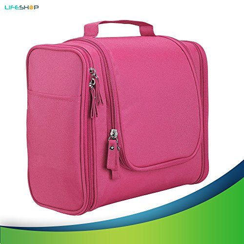 -. Feature : This hanging toiletry kits made of premium quality Nylon Oxford material,well-made and durable.Measures size 10.25" x 8.75" x 4.25" (LxWxH). Weight: 9.5oz. The durable water-resistant fabric is convenient to wipe clean and dry easily. The stitching is well sewn and reinforced at all stress points. / LifeShop toiletry bag surface designed with an gray internal lining to easily wipe down leaks and spills,durable hanging loop handle for comfortable carrying from the travel bag to the hotel bathroom or for it in the closet,towel rack or on a doorknob. You can put your make-up, shampoo, soap, toothbrush, toothpaste, shaving kit and so on, all in one place. / Two pockets are balanced on the left and right sides, one large main storage room in center with an external front mesh pockets keeps items easily viewable and well-sorted. Built-in heavy duty hanging hook allows more easier hanging and access on the bathroom door, shower rod or towel rack. Durable carrying handle is convenient to carry or hung up. Ideal for business trip, vacation, gym, makeup, outdoors activities, picnic, bathroom organization and more. / The travel packing organizers can fill with all your travel needs and pull it out at the hotel and hang it in the bathroom. Makes a great choice for business trips,summer vacations,or out-of-town family holidays,or for dorm rooms or simply heading to the gym. Elegant design ,foldable and lightweight. / If you're not completely satisfied or the item isn't what you expected,then we will refund your money with no reason, just return it to us within 30 days after the date of purchase.