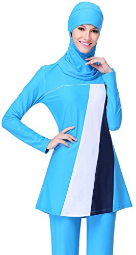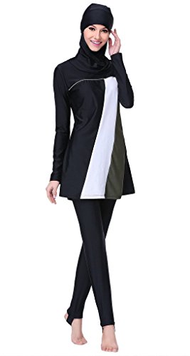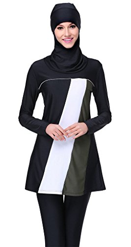 -. Title : Ababalaya Womens' Color Block Swimsuit Muslim Swimwear with Hijab