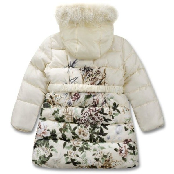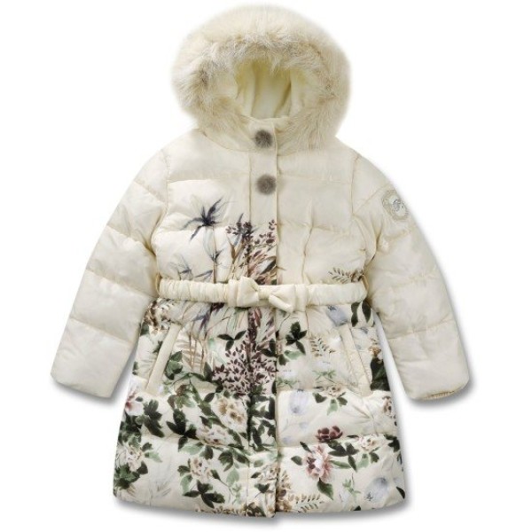 플라워나염이 프린트된 패딩으로 무릎정도의 기장으로 벨트가 세트상품입니다.