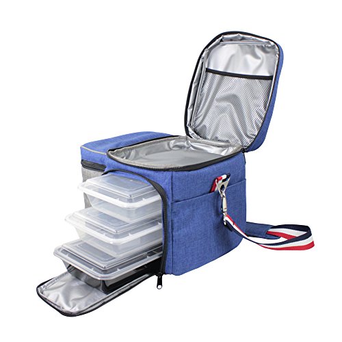MEN'S MEAL PREP BAG - the main and the top compartment fit 4 meal prep containers (28oz containers, measuring 8.5L*5.75W*2.25H inch, NOT INCLUDED), hold a decent amount of food, easy to manage, carry and tote around. Enjoy your big meal
