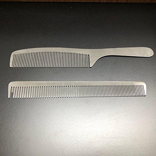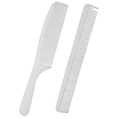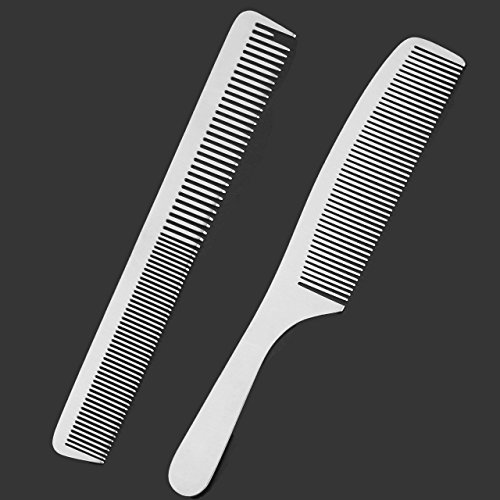 CCbeauty 2-Packs Metal Barber Comb Set Pack for Men & Women,Professional Hairdressing Salon Combs Hair cutting Tool Detangler Comb with Leather...