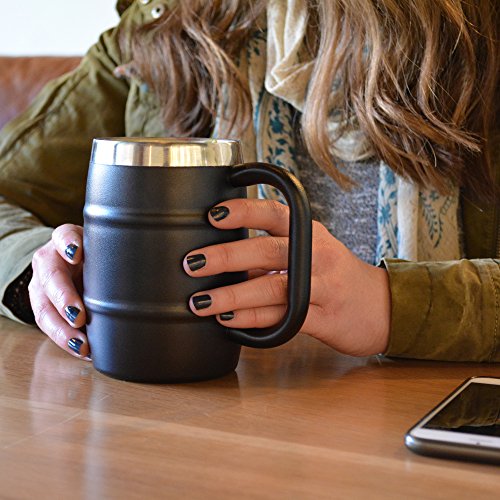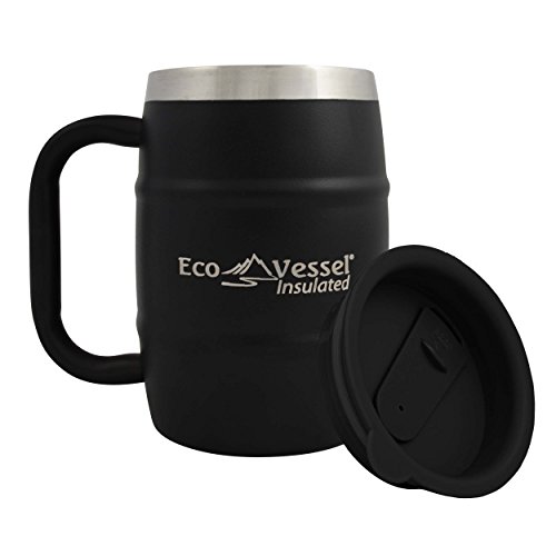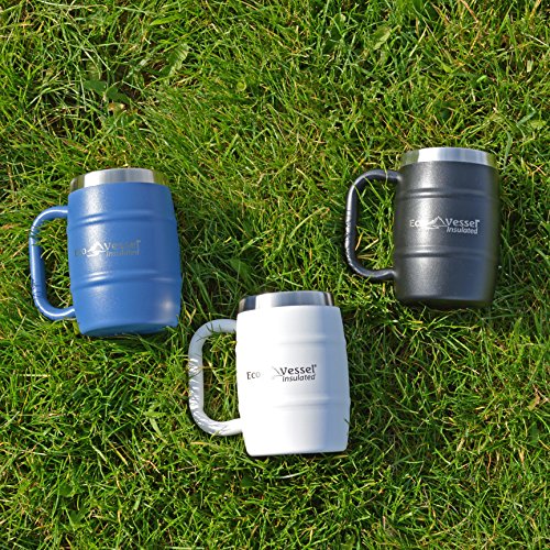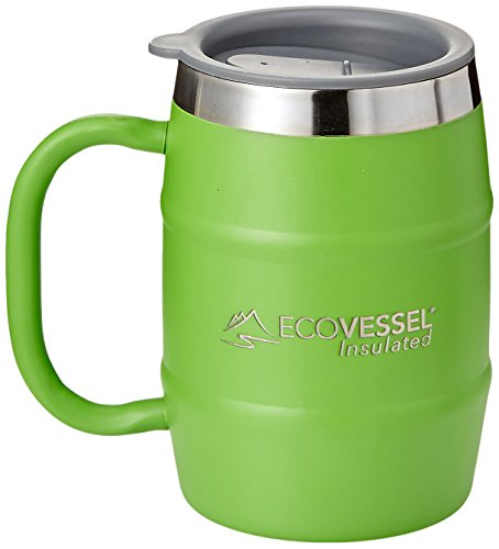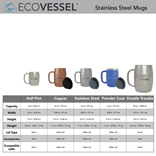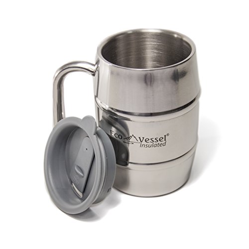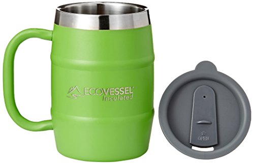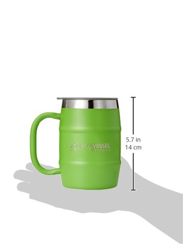 Studio : Eco Vessel Publisher : Eco Vessel Binding : Sports Product Description From cold brews to a steamy cup of coffee, the 16-ounce Eco Vessel Double Barrel Insulated Stainless Steel Mug keeps all of your drinks insulated throughout the day. Made of two layers of premium #304 stainless steel, this stainless steel mug lets you sip hot and cold drinks alike without worries of chemical leaching from toxins like BPA, phthalates and other liners. The insulated tumbler's included lid features an open/close slider that makes on-the-go sipping comfortable and free of spills. On the side of your stainless steel mug, a round tube handle keeps your hands safe from hot or cold temperatures while sipping, and ensures that you can take your waste-free travel buddy anywhere, anytime. According to the Clean Air Council, the average American office worker uses and disposes of about 500 disposable cups every year. With Eco Vessel's Double Barrel Insulated Stainless Steel Mug, you can carry and enjoy 16 ounces of your favorite morning pick-me-up without the waste of disposable paper and plastic cups. It's a small lifestyle change that can make a big difference in reducing the amount of disposable cups you might throw away over the course of a year and beyond. Check out our entire line of Eco Vessel insulated water bottles and more for additional ideas on how you can curb your consumption of single-use cups and bottles. Size: Holds 16 ounces, 5"H x 3.5" dia. Specify Color. 0