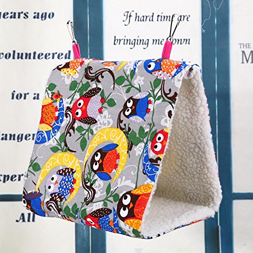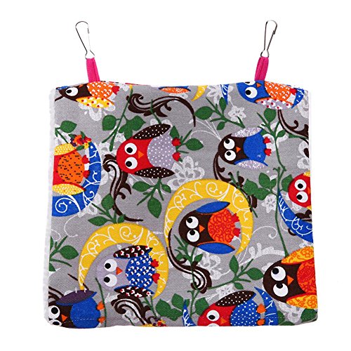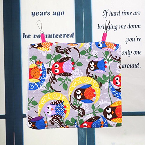 Specifications: Color: owl, camouflage Size: Small size: 17 x 11 x 13(high)cm/6.69 x 4.33 x 5.12in (suitable for peony, tiger skin, pearl bird, etc.) Medium size: 24 x 17 x 18(high)cm/9.45 x 6.69 x 7.09in (suitable for peony, xuan wind, sun, monk, etc.) Large size: 29 x 20 x 25(high)cm/11.42 x 7.87 x 9.84in (suitable for parrots, amazons, small sunflowers, etc.) Material: canvas, berber fleece Suitable for: bird general Package included:1 X Bird Hammock Note: This bird's nest doesn't contain change pads, add a piece of toilet paper pad in the bird's nest, convenient to clean and change, but most of the parrot don't poop in its own nest. 0 |