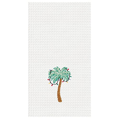 - Towel features an embroidered tropical palm tree with Christmas lights hanging off the top