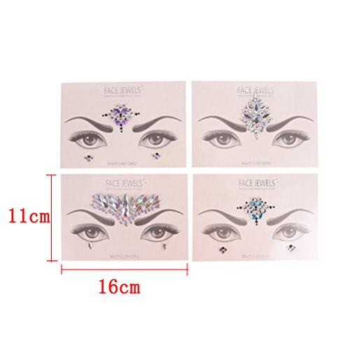 -. Binding : Misc. -. Brand : Xiangfeng -. Color : colorful -. EAN : 0601715676629 -. Feature : Make You Special---4+ unique and individual designs that allows you to create a number of looks / Sparkling Your Eye---Shine bright like a diamond and dance the night away with it,quickly reach the net red-faced makeup effect / Essential Trendsetter---Place your gems all over your face and body; forehead, eyebrows, cheeks, around your eyes, stomach, chest, back, arms, hands and even your hair! Wear them like a bindi / Perfect Party Makeup--for festivals, events, raves, beaches, day clubs, make up artists / Easy Use Makeup---self-adhesive body and face jewels,Once the glue has dried out they can be reapplied with eyelash or body glue -. IsAdultProduct : 0 -. Label : Fragrant pink -. Manufacturer : Fragrant pink -. MPN : Fragrant pink-SENS-0303-AB-7 -. PackageQuantity : 4 -. PartNumber : Fragrant pink-SENS-0303-AB-7 -. ProductGroup : Beauty -. ProductTypeName : BEAUTY -. Publisher : Fragrant pink -. Size : 11*16cm -. Studio : Fragrant pink -. Title : 4pcs Temporary Rhinestone Gem Face Jewel Stickers Rhinestone Tattoo Eye Glitter Shimmer -. UPC : 601715676988