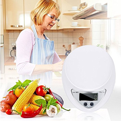 LCD Screen Kitchen Food Weight Scale Unit KG Gram Pound Ounce 11 lb 5kg x 1g Electronic Compact Digital Scale with Autom-off Tare and Auto-zero Functions