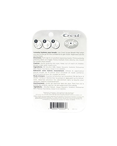 -. Feature : Use Crest Scope Breath Mist when you are on the go for the confidence to get closer / Crest Clean, Scope Freshness / 0.24 ounce Breath Mist, 6 count / Approved for Airline Travel! / Comes with display box