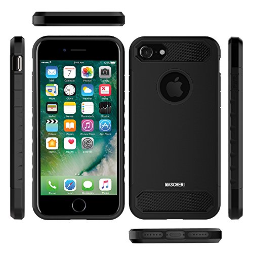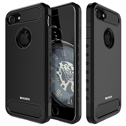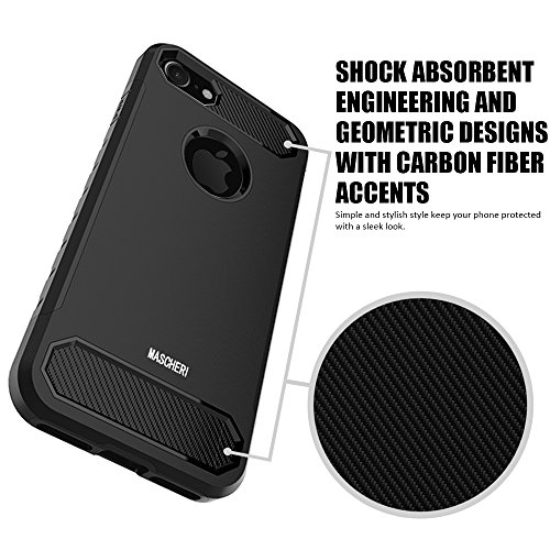 iPhone 8 Plus Case, iPhone 7 Plus Case, Mascheri [Carbon Fiber Design] Shock Absorption Protective Dual Layer Military-Grade Defender Hybrid Case Cover for Apple iPhone 8 Plus / iPhone 7 Plus - Black