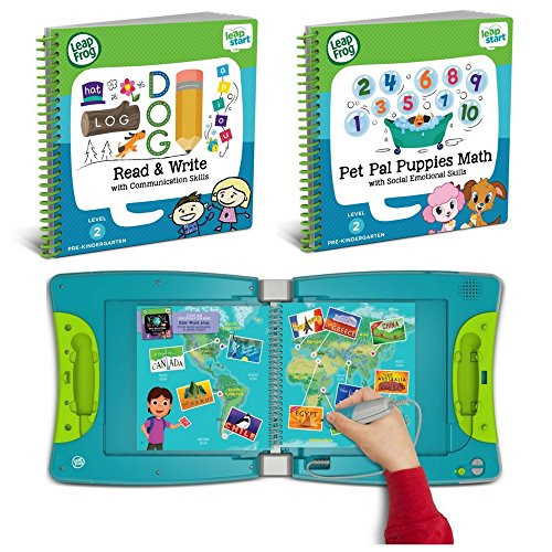 -. Feature : LeapFrog LeapStart for Kindergarten & 1st Grade + Level 2 Activity Books Bundle. / LeapFrog LeapStart Interactive Learning System for Kindergarten & 1st Grade is an interactive learning system that gets kids excited about everything from creative thinking to STEM with fun replayable activities that teach life and school skills. / LeapFrog LeapStart Interactive Learning System for Kindergarten & 1st Grade has 400+ activities across a library of 16 books (sold separately) and 50 key skills per level, we're helping kids build tomorrow's skills today, in new imaginative ways. / LeapFrog LeapStart Pre-Kindergarten Activity Book: Read & Write and Communication Skills teaches 11 pre-kindergarten reading and writing skills: identifying rhyming words, understanding how words are formed, writing letters and more! Includes 40+ replayable activities and 25+ reward stickers. Works with LeapFrog LeapStart Interactive Learning System for Kindergarten & 1st Grade. / LeapFrog LeapStart Pre-Kindergarten Activity Book: Pet Pal Puppies Math and Social Emotional Skills teaches 16 pre-kindergarten math and social emotional skills: identifying numbers 1-10, identifying emotions through facial expressions and more! Includes 40+ replayable activities, 25+ reward stickers and 50+ interactive stickers. Works with LeapFrog LeapStart Interactive Learning System for Kindergarten & 1st Grade.