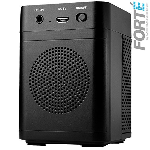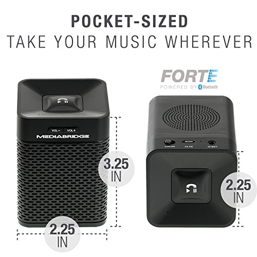 Compact design is 3.5 inches tall x 2.5 inches wide x 2.5 inches deep and weighs in at a portable 8 ounces. Easy to use with any smartphone, tablet or MP3 player.