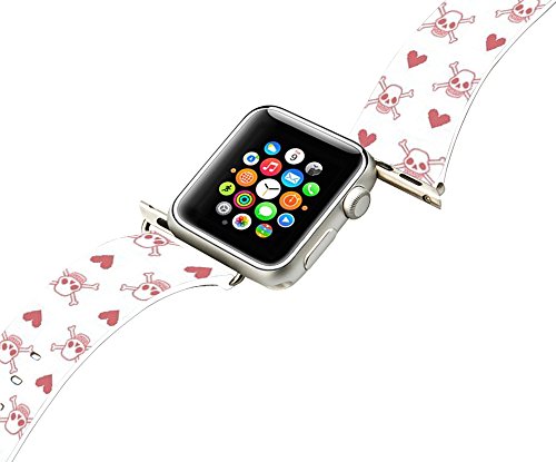 Apple Watch band 38mm, Genuine Leather Sport Iwatch 2 Strap Apple Watch Series 2 series 1 small pink skull & heart print
