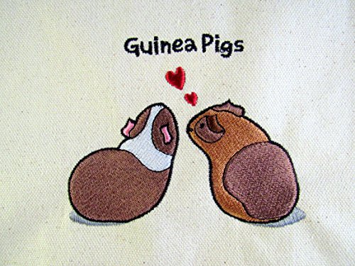 Wheeky Pets Guinea Pig, Embroidered Natural Cotton Canvas Eco-Tote Reusable Shopping Bag, Size Large, Black and White