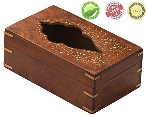 Valentine Day Special Gift, Wooden Leaf Design Inlay Work Tissue Box, Vintage Tissue Box Holder, Tissue Box, Kitchen Tissue Box, 10 X 6 Inch