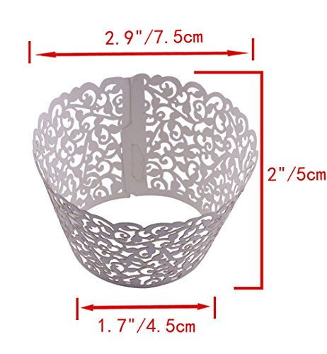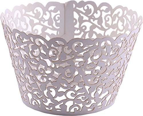DriewWedding 100PCs Vine Designed Hollow Artistic Bake Cake Cupcake Wrappers Paper Cups Liner for Wedding Birthday Tea Party Baby Shower Food Decoration (White)