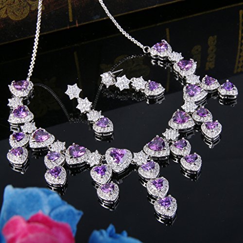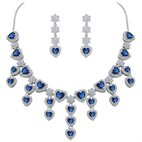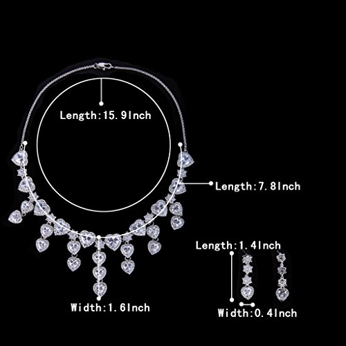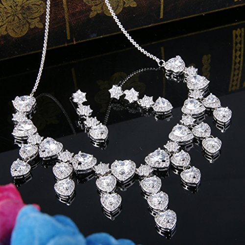 -. Title : BriLove Women's Gorgeous Bridal CZ Heart Shape Cluster Flower Statement Necklace Dangle Earrings Set