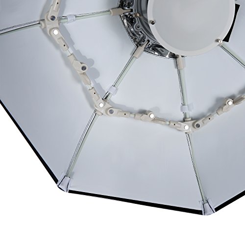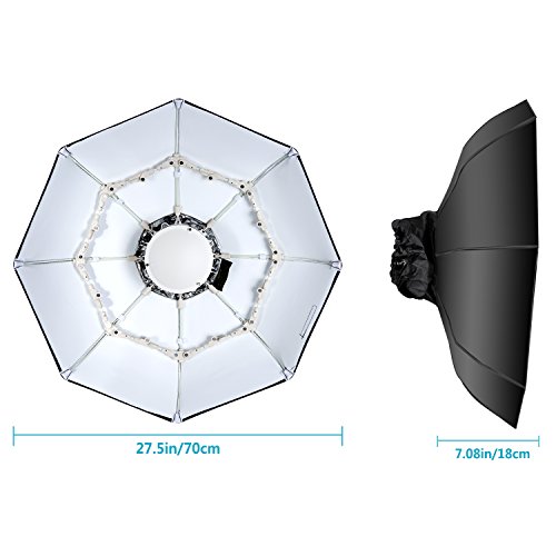 NOTE: Only the Beauty Dish is Included Descriptions: Folding beauty dish provides classic soft but crisp light, which is ideal for portrait and event photography. The integrated and durable fiberglass frame as well as the fabric construction assure that the folding beauty dish won't lose its shape even after bumps or impacts. For a softer lighting effect, the removable front diffuser is easily attached to the outer edge of the beauty dish. The light weight and compact size make transport effortless. Specifications: Weight: 57.15 ounces/ 1.62 kilograms Color: Black/White Shape: Octagonal Diameter: 27.5 inches/70 centimeters Depth: 7.08 inches / 18 centimeters Package Contents: 1x Beauty Dish 0