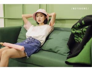 幼い印象のミニスカートもカットオフのデザインで、大人カジュアルな印象に⭐