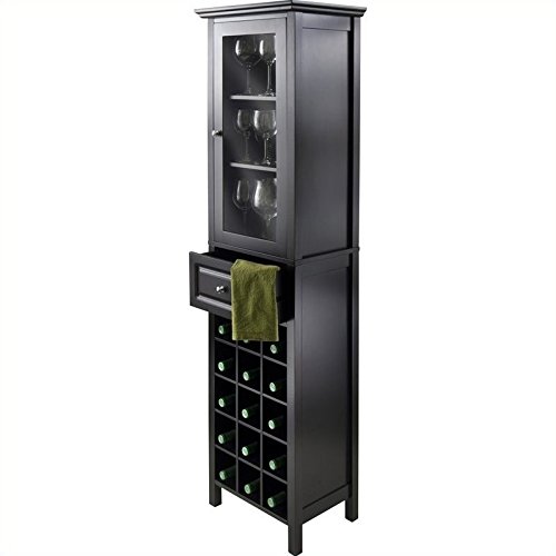 -. Title : Winsome Burgundy Wine Cabinet 15-Bottle, Glass Door