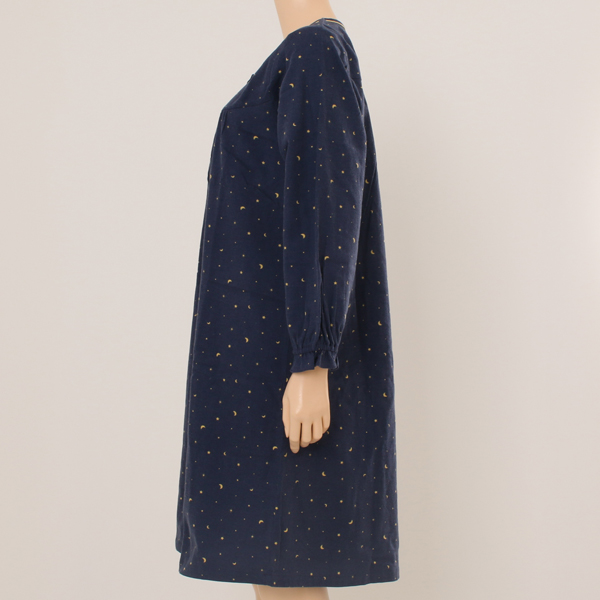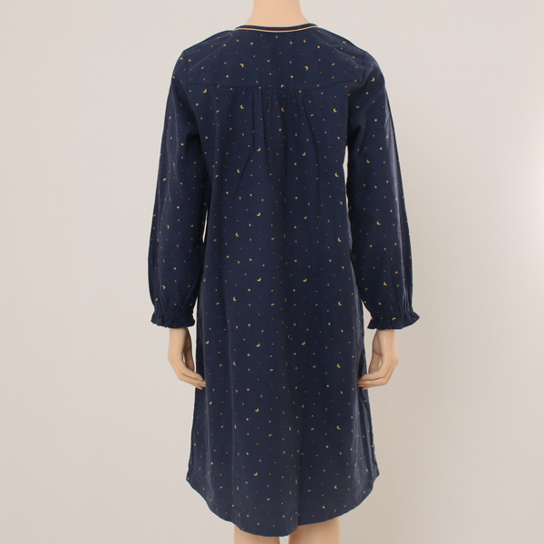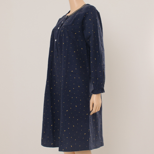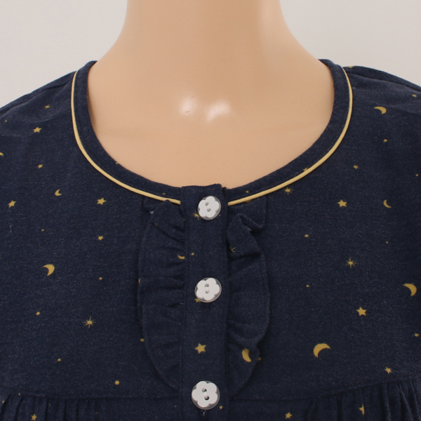 네이비 칼라에 밤하늘의 쏟아지는 별처럼 작은 별 달이 엘로우 칼라로 프린트된 동절기 제품입니다.