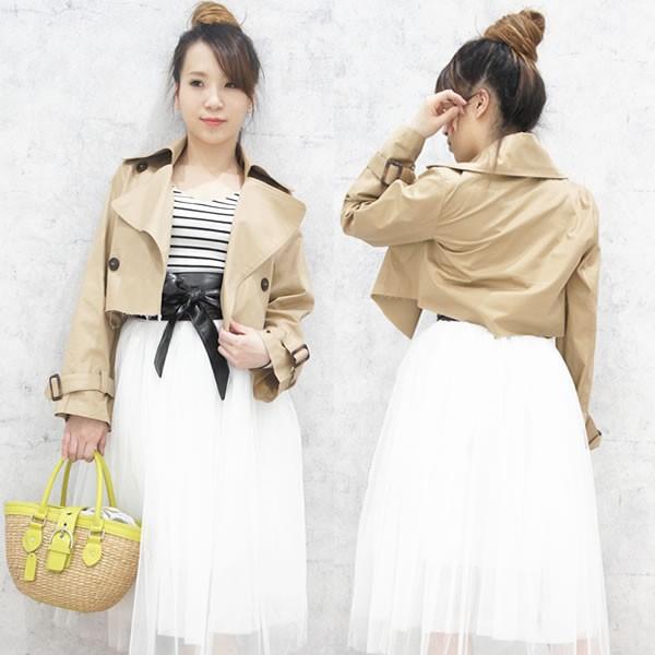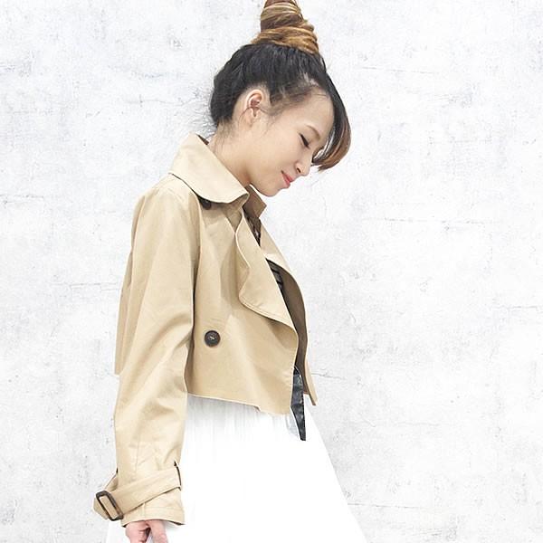 | 商品名:トレンチジャケット ショート丈 レディース アウター 長袖 ベージュ ネコポス不可【トレンチ ジャケット コート ショート丈 切りッパ トレンチジャケット ライトアウター モード おしゃれ コーディネート】 |